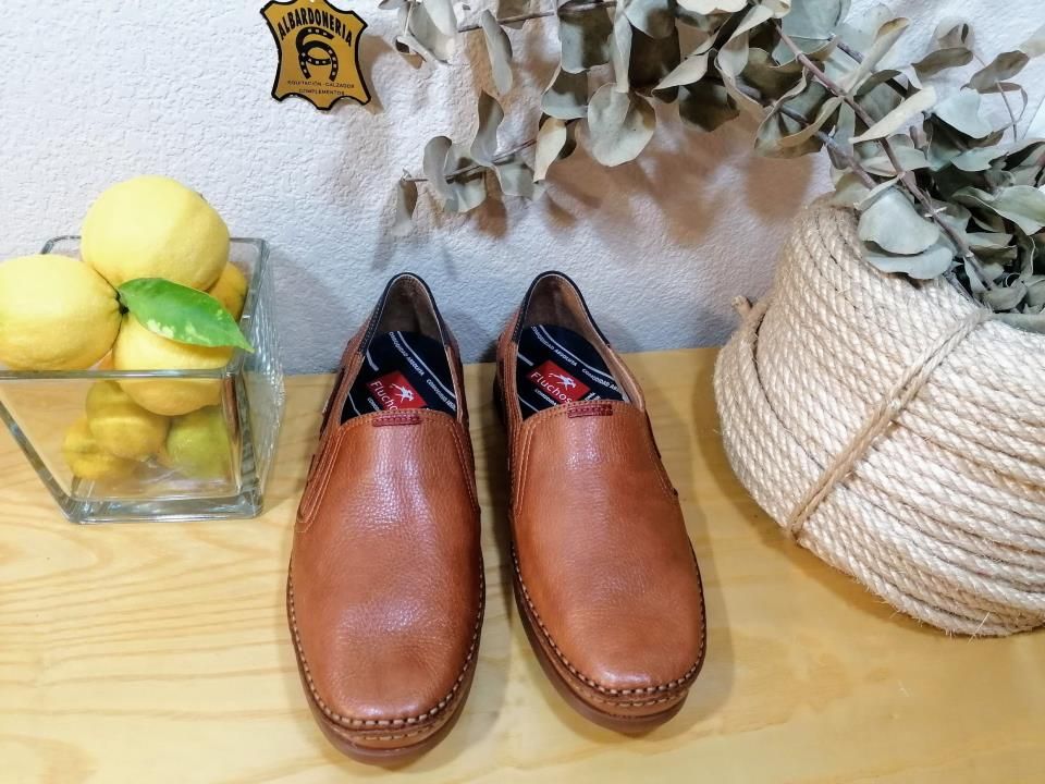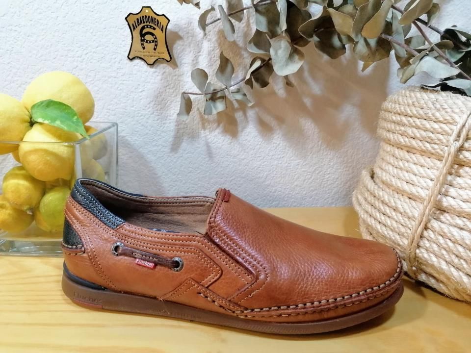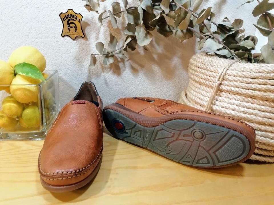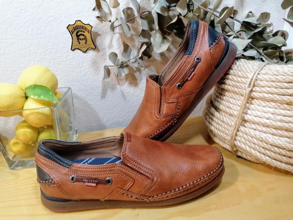 Zapato Mariner en piel color cuero fabricado por Fluchos en España.Es un mocasín de pala alta con elástico a los laterales. Las plantillas son extraíbles. Mariner es un modelo atemporal. Este zapato combina comodidad y diseño buscando así un aspecto más primaveral y casual.Lo especial de este modelo es su cosido a mano.