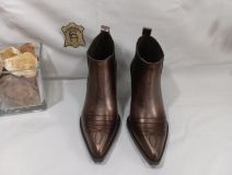 Botines Sunriver fabricado por la marca Pedro MIralles en España en piel metalizada en color humo viejo. El modelo Sunriver combina la estética del oeste con la comodidad y la versatilidad de unos botines Chelsea. Los paneles elástico de los laterales facilitan el calce de lo botines y ofrecen un ajuste ceñido y cómodo. Estos botines son una elección atrevida, moderna y sofisticada.Altura de tacón: 7cm. Altura de plataforma 1 cm. Ancho de caña: 28cm.Alto de caña: 10 cm. Fabricado en España.