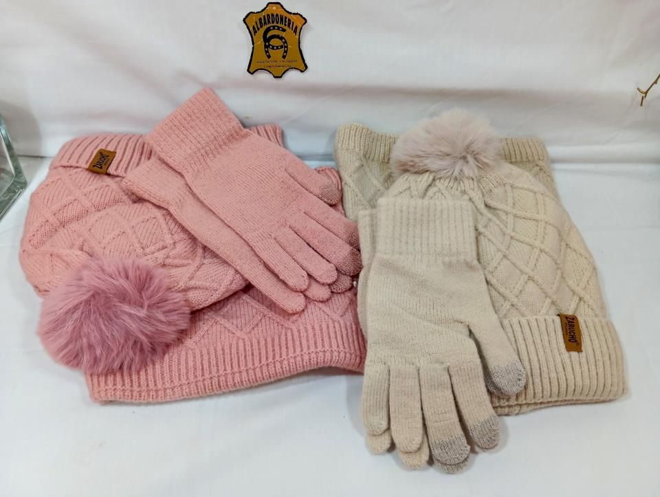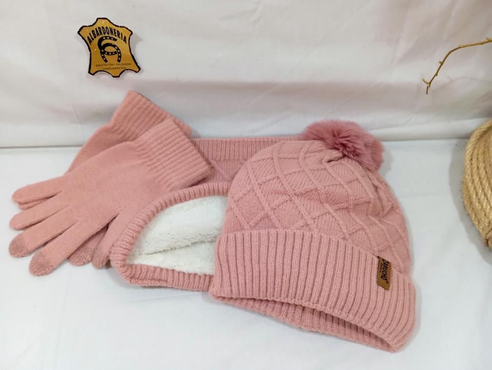 44000041 SET 3P GORRO-BRAGA-GUANTE ROMBO POMPO100%