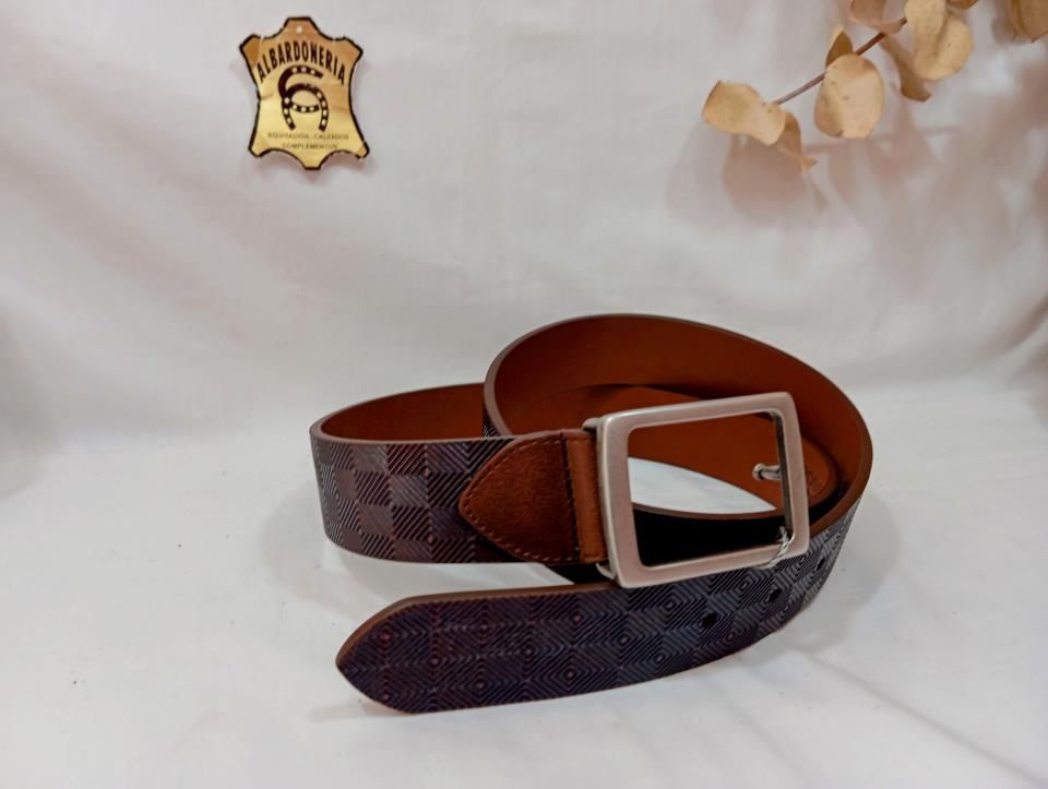 11749 CINTURON PIEL VAQUETA MUSTAN GRB.ROMBOS AZUL